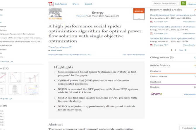 "A high-performance social spider optimization algorithm for optimal power flow solution with single objective optimization", a published research in the premier specialized journal