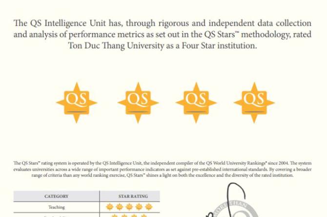 Ton Duc Thang University: 4/5 star in QS ranking