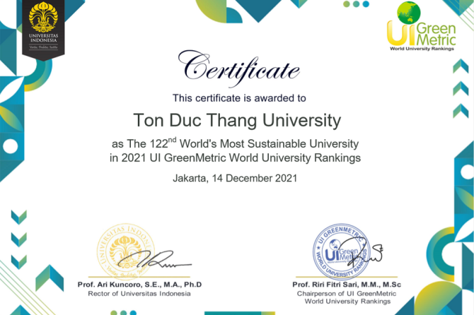 Ton Duc Thang University ranked 122nd in the world for sustainability