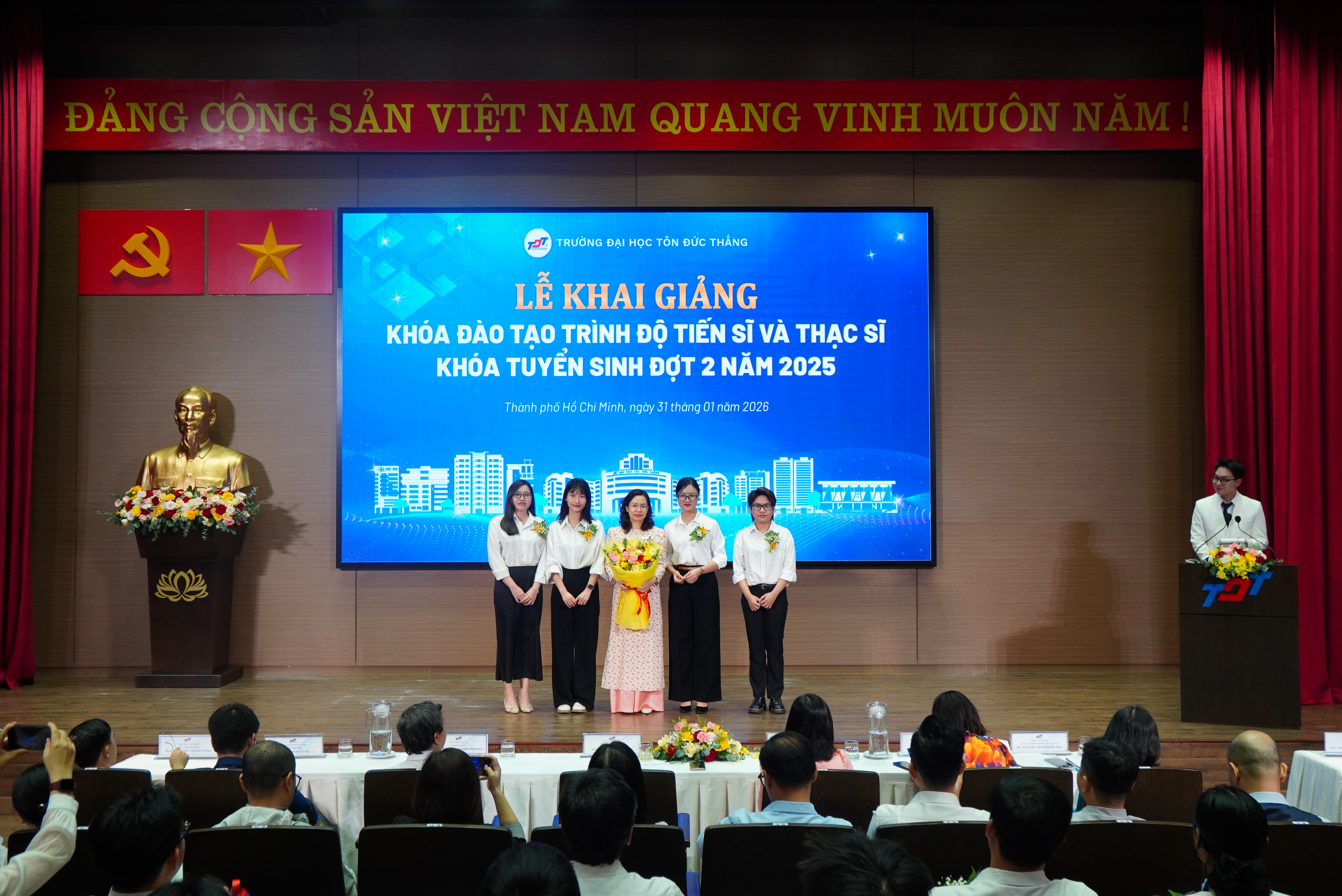 Ngày 31/01/2026, Trường Đại học Tôn Đức Thắng (TDTU) long trọng tổ chức Lễ Khai giảng chương trình đào tạo sau đại học trình độ tiến sĩ, thạc sĩ đợt 2 năm 2025, chính thức chào đón 16 nghiên cứu sinh và 156 học viên cao học nhập học trình độ thạc sĩ, tiến sĩ.
