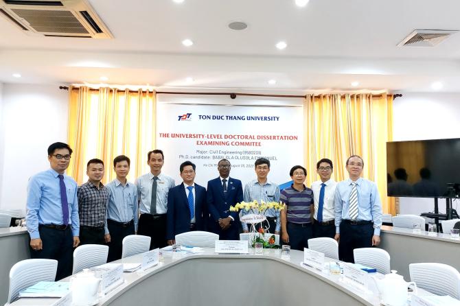 Nghiên cứu sinh Babalola Olusola Emmanuel (quốc tịch Nigeria) ngành Kỹ thuật xây dựng bảo vệ thành công luận án tiến sĩ cấp Trường