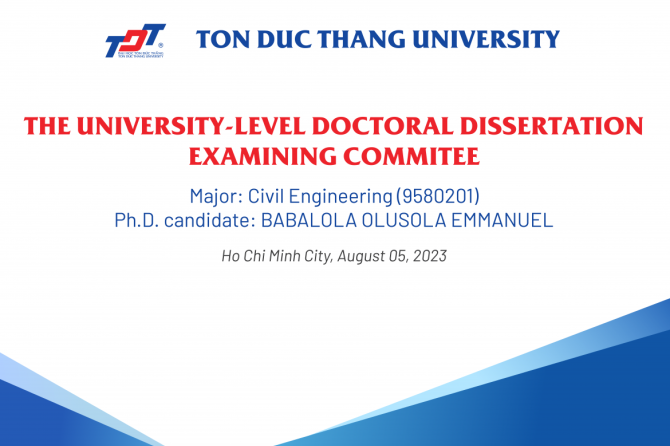 Hội đồng đánh giá luận án tiến sĩ cấp Trường ngành Kỹ thuật xây dựng (ngày 05/08/2023)